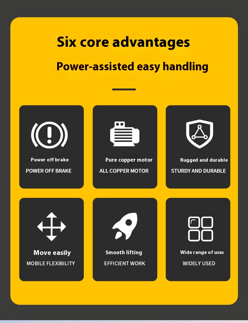 it ensures stable load suspension for precise vertical movement, while the intuitive handle control enables